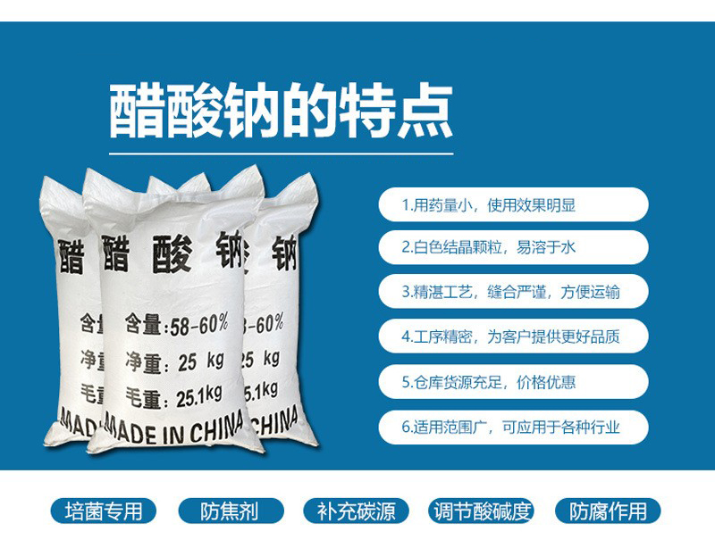 乙酸鈉又名醋酸鈉,是一中有機(jī)物,在市場(chǎng)上可以做為緩沖劑 媒染劑 等。乙酸鈉是一種絮凝劑,應(yīng)于工業(yè)固液分離,在化工行業(yè),肉類防腐劑 印染印刷行業(yè)等。