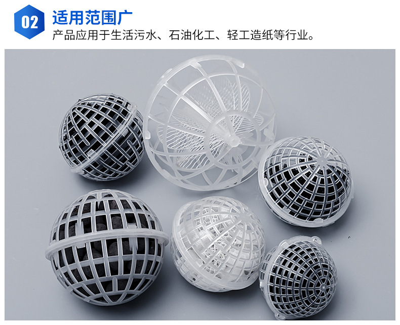 多孔球形生物懸浮球填料為什么也屬于一種組合填料,因為懸浮球填料具有全立體結構,里面可以填充聚氨酯海綿 火山巖 陶粒 沸石 脫氮填料 纖維濾料等生物水處理濾料【填料】。